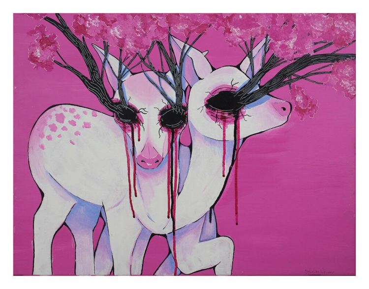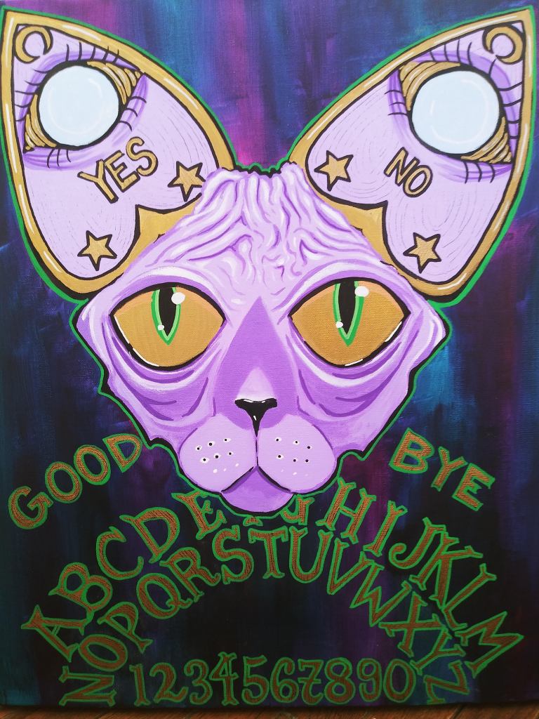 Meaghan is a queer artist from Woodbridge, VA but has spent the majority of her life stuck in Stafford. She is a traditional artist that mostly uses acrylic or watercolor paints on canvas/paper. She also dabbles in hand-painted accessories like shoes, hats, and bags. Her main source of inspiration is dealing with mental illness and trauma. Most paintings are symbolic, but sometimes they are just strange ideas that need to be put on paper. She also finds inspiration in the magic of flora and fauna and of mystical worlds beyond the naked eye. Most paintings are of animals, but sometimes they have human bodies. She believes there is a lot of representation and innocence in animals and then exposure or power in the naked human form.